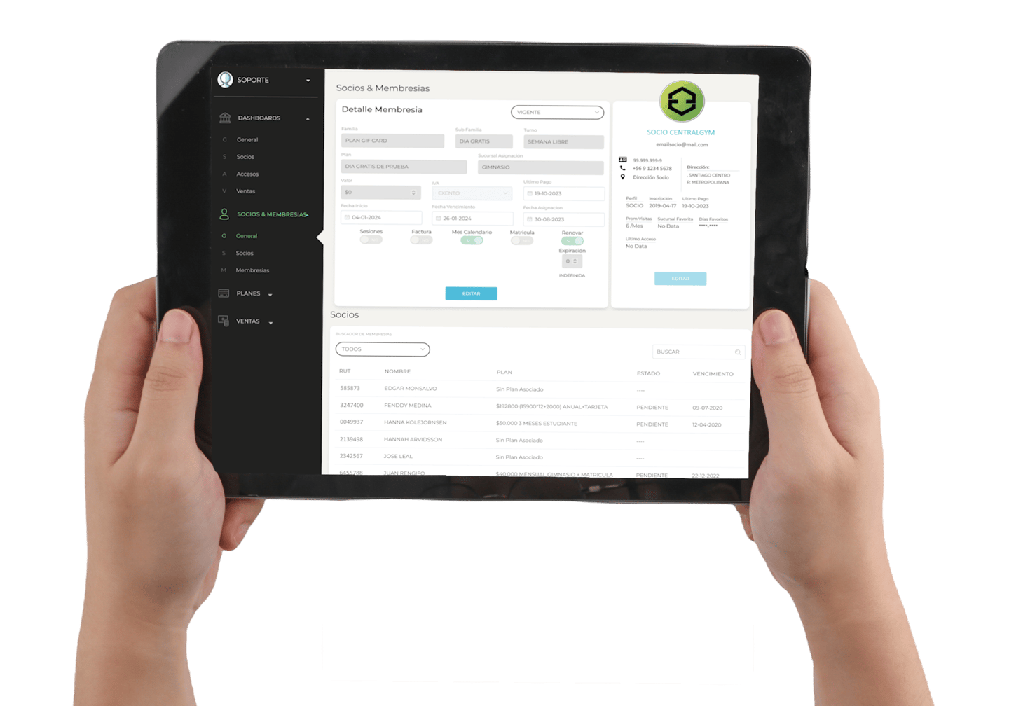Administra eficientemente a tus socios y sus membresías desde el módulo CentralGym POS